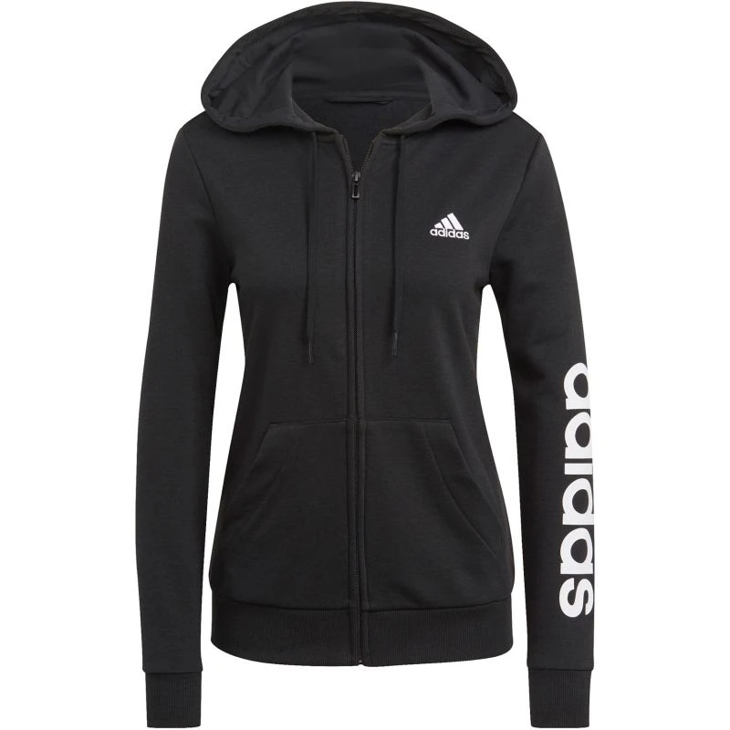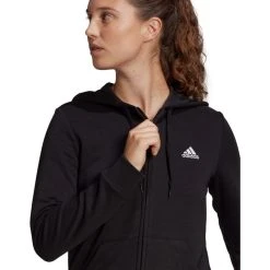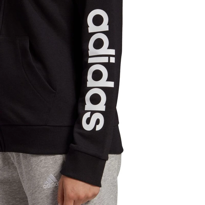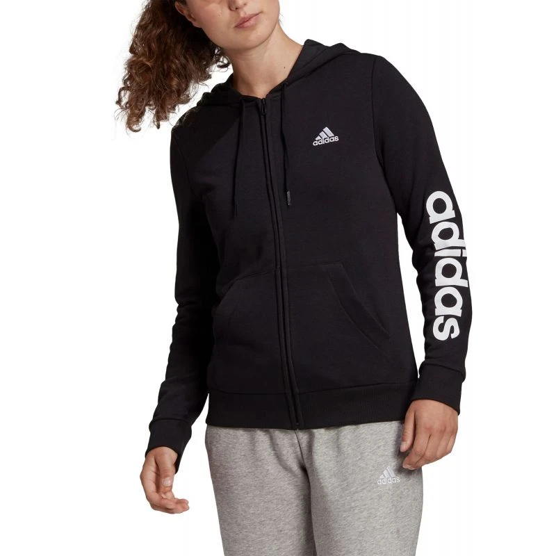 De adidas Essentials FZ Logo Hood Women Blijf warm in deze Essentials Full Zip hoodie van adidas. De hoodie is voorzien van een klein adidas logo op de borst en in het groot adidas op de arm. De hoodie heeft een kangoeroe zak aan de voorzijde en is voorzien van aantrekkoordjes om de capuchon strakker aan te trekken. De hoodie is gemaakt van duurzaam katoen waardoor hij lang mee gaat.
