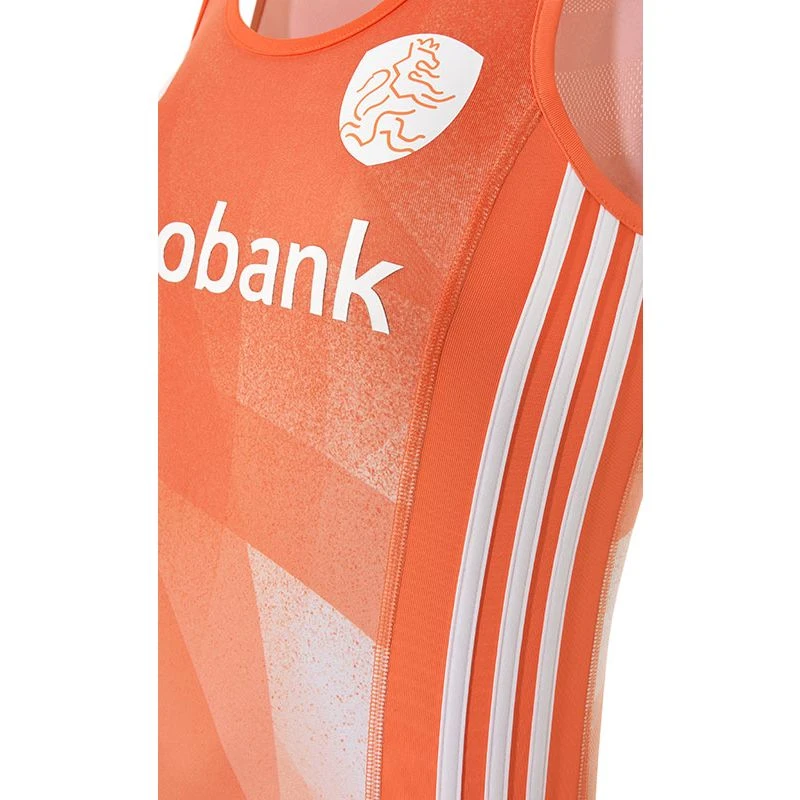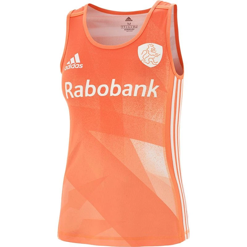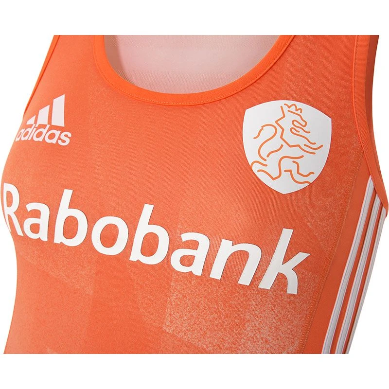 De adidas KNHB Hockey Shirt Thuis Dames is afkomstig uit de officiële KNHB-collectie van adidas. Maak je KNHB-tenue voor thuiswedstrijden compleet met het oranje shirt! Het shirt zal tijdens uitwedstrijden gedragen worden door Eva de Goede, Lidewij Welten en Maria Verschoor.