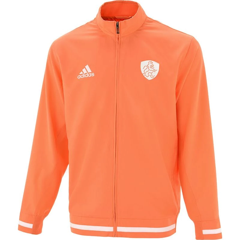 De adidas KNHB Presentatie Jacket Heren is afkomstig uit de officiële KNHB-collectie van adidas. Het jacket zal voor en na de wedstrijden gedragen worden door Jorrit Croon, Thierry Brinkman en Billy Bakker.